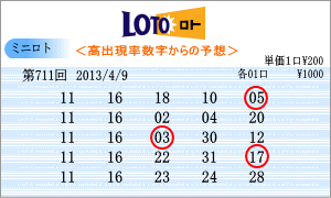 | 4月9日の運命数は、「8」と「4」です。該当数字は、「08」・「18」・「28」・「04」・「14」・「24」の6つ。チャートからの注意数字は、「11」・「14」・「15」・「16」・「17」・「18」・「19」・「21」・「24」・「25」などです。これらの中から711回を狙う軸数字は、「18」と「24」を選びました。 |