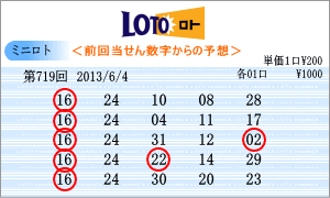 | 6月4日の予測範囲は、「01」・「02」・「03」・「10」・「11」・「12」・「15」・「16」・「17」・「18」・「19」・「20」・「23」・「24」・「25」となりました。連続候補は、「16」と「24」を軸に。高確率は、現時点での回数から「03」と「18」を軸に。低確率は、2回しか出現していない「12」と「19」を軸数字としました。「01」は4回出現しているのですが全部ボーナス数字という珍しい出現が続いています。 |