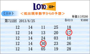 | 6月25日の出現予測範囲は、「02」・「03」・「04」・「05」・「06」・「11」・「12」・「13」・「14」・「15」・「16」・「18」・「21」・「22」・「23」となりました。連続候補は、「05」と「22」を軸数字に。高確率は予測範囲の中から、9回の「03」と7回の「18」を軸に。低確率は、3回の「12」と2回の「14」を軸数字として選びました。 |