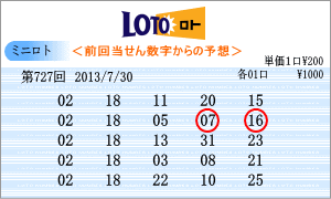 | 7月30日の予測範囲は、「01」・「02」・「03」・「06」・「07」・「08」・「15」・「16」・「17」・「18」・「19」・「24」・「25」・「26」・「31」となりました。連続候補は、「02」と「18」を軸数字に。高確率は、9回の「03」と7回の「16」を軸に。低確率は、3回の「08」と4回の「19」を軸数字としました。それぞれ5口の買い目は、ロト攻略マシン「ラッキー7」のパーフェクトデータから組み立てました。 |