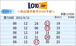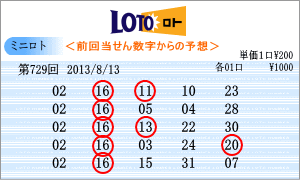 | 8月13日の予測範囲は、「02」・「08」・「09」・「10」・「11」・「12」・「13」・「14」・「15」・「16」・「22」・「27」・「28」・「29」となりました。連続候補は、「09」と「11」を軸数字に。高確率は、10回の「02」と9回の「16」を軸に。低確率は、3回の「08」と「12」を軸数字としました。5口の買い目は、ロト攻略マシン「ラッキー7」の最新相性数字で組み立てました。 |