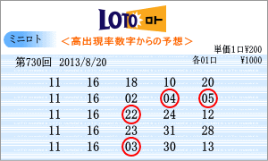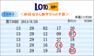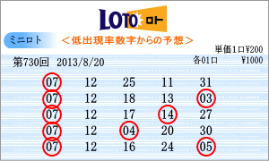 | 8月20日のミニロトを狙う予測範囲の数字は、「03」・「07」・「11」・「12」・「13」・「14」・「16」・「17」・「18」・「20」・「21」・「28」・「29」・「30」です。連続候補は、「13」と「29」を.軸数字に。高確率は、ベスト数字1位の「11」と2位の「16」を軸数字に。低確率は、ワースト3位の「07」と3回の「12」を軸数字としました。 |