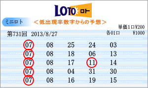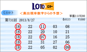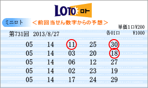 | 8月27日の運命数は、「6」・「2」・「9」の3つ。「06」・「16」・「26」・「02」・「12」・「22」・「09」・「19」・「29」の9つが該当数字。チャートからの注意数字は、「02」・「04」・「05」・「06」・「07」・「08」・「15」・「18」・「20」など。「06」・「16」・「02」が候補なんですが、今回現在10回でトップの「02」と「16」が候補なのでこの2つを軸数字としました。 |