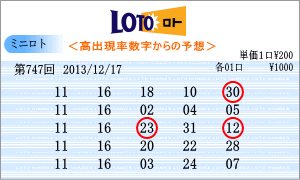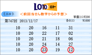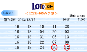 | 12月17日の747回を狙う予測数字は、「01」・「02」・「03」・「04」・「08」・「09」・「10」・「11」・「14」・「15」・「16」・「18」・「19」・「20」・「21」・「31」です。連続候補は、「10」と「20」を軸数字に。高確率は、14回の「16」と13回の「11」を軸数字としました。低確率は、4回の「08」と5回の「15」を軸数字としました。 |
