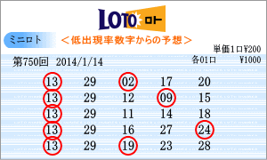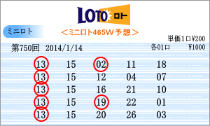 | 1月14日の運命数は「5」・「3」・「7」と3つです。該当する数字は「05」・「15」・「25」・「03」・「13」・「23」・「07」・「17」・「27」の9つあります。チャートからの注意数字は、「04」・「10」・「11」・「12」・「13」・「15」・「17」・「26」・「28」です。軸候補は「15」・「13」・「17」の3つですが、その中から「15」と「13」を選びました。 |