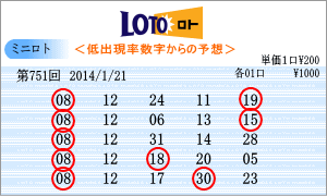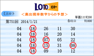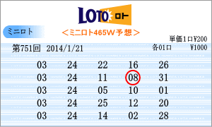 | 1月21日の運命数は、「1」・「4」・「3」の3つ。該当する数字は、「01」・「11」・「21」・「31」・「04」・「14」・「24」・「03」・「13」・「23」の10個です。チャートからの注意数字は、「03」・「05」・「09」・「10」・「12」・「13」・「14」・「18」・「19」・「24」となりました。今回の軸数字はこの中から「03」と「24」を軸数字として選びました。 |
