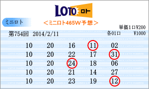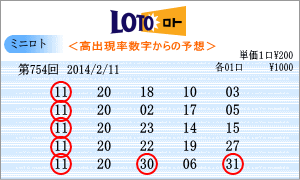 | 2月11日の運命数は、「9」・「8」・「0」の3つ。該当する数字は、「09」・「19」・「29」・「08」・「18」・「28」・「10」・「20」・「30」の9つです。出現チャートからの注意数字は、「06」・「09」・「10」・「11」・「19」・「20」・「21」・「22」など。その中からベスト数字3位の「20」と9位の「10」を軸数字として選びました。「09」・「19」・「18」も候補としてはありました。 |