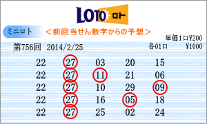 | 2月25日の予測範囲は、「04」・「07」・「13」・「14」・「15」・「19」・「20」・「21」・「22」・「25」・「26」・「27」・「28」。連続候補は、「25」の3回連続もありそうですが、軸数字は「22」と「27」としました。高確率は、ベスト数字3・5位の「14」と「20」を軸数字に。低確率は、ワースト数字3・5位の「07」と「21」を軸数字としました。 |