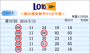 | 5月13日の予測範囲は、「04」・「05」・「06」・「07」・「08」・「09」・「11」・「12」・「13」・「15」・「16」・「17」・「24」・「27」・「28」です。連続候補は、「12」と「16」を軸数字に。高確率は、ベスト数字1位の「11」と今年のトップ数字「08」を軸数字に。低確率は、予測範囲の中で少ない、「09」と「17」を軸数字としました。5口の買い目はラッキー7から組み立てました。 |