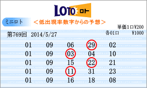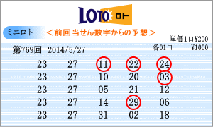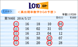 | 5月27日の予測範囲は、「01」・「02」・「03」・「04」・「08」・「09」・「10」・「11」・「15」・「16」・「22」・「23」・「24」・「25」・「26」・「27」・「28」です。連続候補は、「23」と「27」を軸数字としました。高確率は、ベスト数字1位の「11」と2位の「16」を軸数字に。低確率は、ワースト数字1位の「01」と3位の「09」を軸数字としました。5口の買い目はロト6攻略マシンのミニロトパーフェクトデータから組み立てました。 |