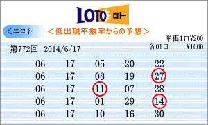 | 6月17日の予測範囲は、「06」・「07」・「08」・「10」・「11」・「12」・「17」・「18」・「21」・「22」・「23」・「25」・「26」・「27」・「29」・「30」・「31」となりました。連続候補は、「22」・「30」とともに連続となる狙いです。高確率は、9回の「08」と8回の「27」を軸数字に。低確率は、まだ1回という「06」と「17」を軸数字に選びました。 |