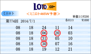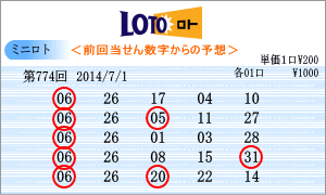 | 7月1日の運命数は、「3」と「8」の2つです。「03」・「13」・「23」・「08」・「18」・「28」の6つが該当数字です。チャートからの注意数字は、「03」・「05」・「06」・「07」・「08」・「16」・「18」。直近での出現ランクでは「08」がトップです。その勢いを信じて「08」とベスト6位の「18」を軸数字としました。 |