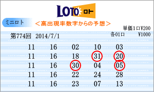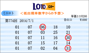 | 7月1日の予測範囲は、「01」・「02」・「03」・「05」・「06」・「07」・「08」・「10」・「11」・「12」・「16」・「18」・「25」・「26」・「27」・「31」です。連続候補は、「06」と「26」を軸数字に。高確率は、ベスト1・2位の「11」と「16」を軸数字に。低確率は、ワースト数字1位の「01」と4位の「07」を軸数字に選びました。 |