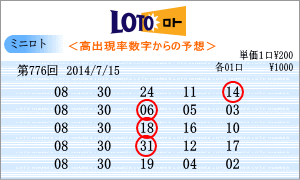 | 7月15日の予測範囲は、「01」・「04」・「05」・「06」・「07」・「08」・「13」・「14」・「15」・「16」・「23」・「24」・「25」・「30」・「31」となりました。連続候補は、「14」と「24」を軸数字に。高確率は、「24」の10回を追う9回の「08」・「30」を軸数字に。低確率は、1回の「04」と4回の「23」を軸数字にしました。最新相性数字から5口の買い目を組み立てました。 |