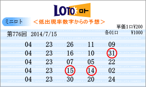 | 7月15日の運命数は「2」・「9」・「8」の3つです。該当数字は、「02」・「12」・「22」・「09」・「19」・「29」・「08」・「18」・「28」の9つです。チャートからの注意数字は、「04」・「05」・「06」・「07」・「08」・「15」・「16」・「22」・「23」・「24」・「25」です。出現チャートのチェックから今回の軸数字は「08」・「22」としました。 |