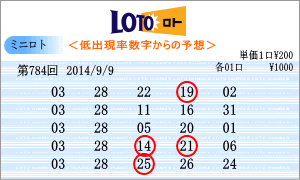 | 9月9日の予測範囲は、「03」・「04」・「05」・「06」・「07」・「08」・「09」・「10」・「11」・「14」・「15」・「16」・「19」・「20」・「24」・「28」となりました。連続候補は、「05」・「10」を軸数字に。高確率は、12回でトップの「24」と11回の「14」を軸数字に。低確率は、1回の「28」、4回の「03」を軸数字としました。5口の買い目は「ミニロトパーフェクトデータ」から組み立てました。 |