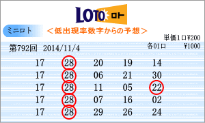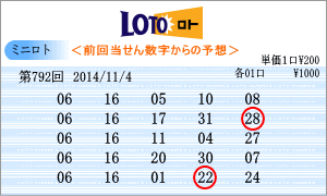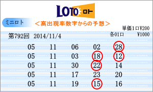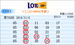 | 11月4日の運命数は「5」と「2」です。「05」・「15」・「25」・「02」・「12」・「22」の6つの数字が該当します。チャートからの注意数字は、「01」・「05」・「11」・「15」・「17」・「19」・「22」・「28」・「29」です。この中から出現回数などをチェックし、「05」と「22」を軸数字としました。5口の買い目は、ミニロトパーフェクトデータより組み立てました。 |