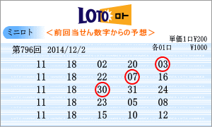 | 12月2日の運命数は「7」と「2」です。該当数字は「07」・「17」・「27」・「02」・「12」・「22」の6つです。チャートからの注意数字は、「01」・「02」・「05」・「07」・「12」・「14」・「15」・「19」・「22」・「24」・「27」となりました。運命数の数字が入っています。今回はこの中から過去33回出現している「22」と「27」の組合せ軸数字を選びました。5口の買い目はミニロトパーフェクトデータより組合せました。 |