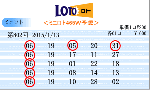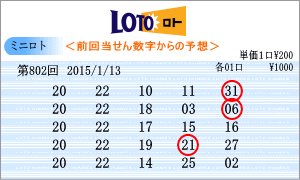 | 1月13日の運命数は「6」と「9」です。該当数字は、「06」・「16」・「26」・「09」・「19」・「29」の6つです。チャートからの注意数字は、「04」・「05」・「06」・「08」・「09」・「16」・「18」・「19」・「21」・「24」など。今回の軸数字としては、「06」・「16」・「09」・「19」の4つに絞った中から「06」と「19」を選びました。「06」と「19」の組合せは過去24回出現しています。 |