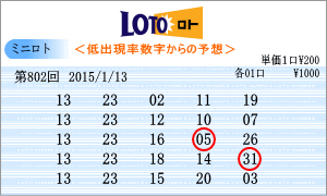 | 1月13日の予測範囲は、「04」・「05」・「06」・「07」・「08」・「13」・「16」・「18」・「19」・「20」・「21」・「22」・「23」・「24」・「25」・「31」となりました。連続候補は、「20」と「22」を軸数字に。この組み合わせは過去29回出現しています。高確率は、ベスト数字2位の「16」と5位の「31」を軸数字に。この組み合わせは過去37回出現しています。低確率は、ワースト数字4位の「13」と昨年5回しか出現しなかった「23」を軸数字に。この組み合わせは過去22回出現しています。2つ1組での最多出現は「02」・「11」と「11」・「18」の41回です。 |