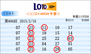 | 2月10日の運命数は、「1」・「2」・「7」の3つです。該当数字は、「01」・「11」・「21」・「31」・「02」・「12」・「22」・「07」・「17」・「27」の10個です。チャートの注意数字は、「02」・「07」・「08」・「09」・「10」・「11」・「12」・「16」・「17」・「27」・「31」です。10個のうち8個が候補となります。この中から今回の軸数字は「07」・「21」というコンビです。過去24回出現のコンビです。465組のトップは「02」・「11」と「11」・「18」で41回です。 |