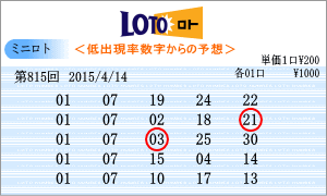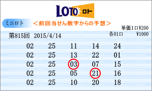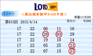 | 4月14日の予測範囲は、「01」・「02」・「07」・「10」・「11」・「12」・「13」・「15」・「17」・「19」・「22」・「25」・「30」となりました。814回からの連続候補は、「02」と「25」を軸数字に。「02・25」は過去25回出現しています。高確率は、ベスト数字5位の「22」と6回の「17」を軸数字に。「17・22」は過去28回出現しています。低確率は、ワースト数字1位の「01」と5位の「07」を軸数字に。「01・07」は過去18回出現しています。「01」から「31」までの数字を2つ1組にした465組の出現順位と回数もミニロトの新たなデータとして活かしたいと思います。 |