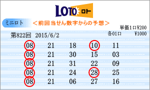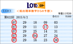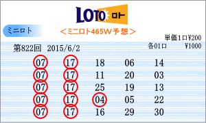 | 6月2日の運命数は「8」と「7」です。該当数字は、「08」・「18」・「28」・「07」・「17」・「27」の6つです。「08」と「18」は前回の抽せん数字です。チャートからの注意数字は、「05」・「07」・「08」・「13」・「16」・「17」・「19」・「20」・「22」・「27」・「28」となりました。この中から今回の軸数字は「07」と「17」としました。 |