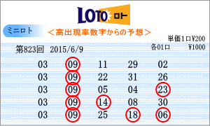| 6月9日の予測範囲は、「03」・「06」・「07」・「08」・「09」・「10」・「11」・「16」・「17」・「18」・「22」・「27」・「28」・「29」となりました。連続候補は、「17」と「28」を軸数字に。高確率は、8回でトップの「03」と「09」を軸数字に。低確率は、2回の「22」と3回の「11」を軸数字に選びました。 |