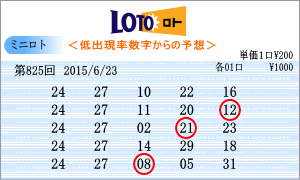 | 6月23日の運命数は「1」・「2」・「7」の3つで、「01」・「11」・「21」・「31」・「02」・「12」・「22」・「07」・「17」・「27」と10個の数字が該当します。チャートからの注意数字も「05」・「07」・「09」・「12」・「15」・「16」・「17」・「21」・「24」・「27」です。軸候補は、「21」・「12」・「07」・「17」・「27」の5つ。このなかから「07」と「21」を軸数字としました。 |
