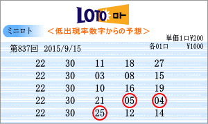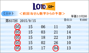 | 9月15日の予測範囲は、「03」・「04」・「05」・「06」・「08」・「09」・「14」・「15」・「16」・「19」・「21」・「22」・「25」・「27」・「30」となりました。連続候補は、ともに8回の「05」と「15」を軸数字に。高確率は、13回の「09」と12回の「03」を軸数字に。低確率は、3回の「30」と4回の「22」を軸数字としました。最新相性数字から5口の買い目を組み立てました。 |
