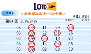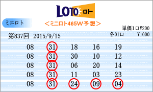 | 9月15日の運命数は、「1」・「8」・「3」の3つ。該当数字は、「01」・「11」・「21」・「31」・「08」・「18」・「28」・「03」・「13」・「23」です。チャートからの注意数字は、「01」・「03」・「04」・「06」・「08」・「11」・「13」・「14」・「19」・「21」・「22」・「31」です。どの運命数がきてもOKといった感じですが、軸数字には「08」と「31」を選びました。 |