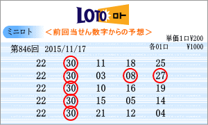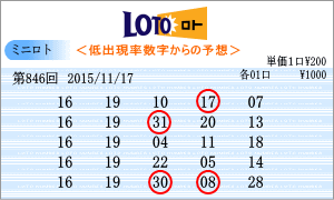 | 11月17日の予測範囲は、「03」・「04」・「08」・「09」・「11」・「14」・「16」・「19」・「21」・「22」・「23」・「25」・「26」・「29」・「30」となりました。連続数字としては、7回の「22」と6回の「30」を軸数字に。高確率は、15回の「09」、14回の「03」を軸数字に。低確率は、4回の「16」と7回の「19」を軸数字として選びました。 |