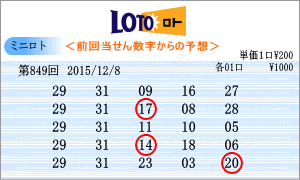 | 12月8日の運命数は「1」・「8」・「3」です。該当数字は、「01」・「11」・「21」・「31」・「08」・「18」・「28」・「03」・「13」・「23」です。チャートからの注意数字は、「02」・「05」・「06」・「08」・「09」・「16」・17」・「20」・「21」・「23」です。今回の軸数字は、「11」と「23」を選びました。 |