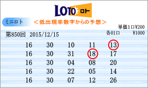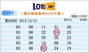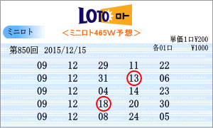 | 12月15日の運命数は、「6」・「2」・「9」の3つ。該当数字は、「06」・「16」・「26」・「02」・「12」・「22」・「09」・「19」・「29」の9つの数字です。チャートからの注意数字は「01」・「05」・「09」・「12」・「16」・「18」・「21」・「23」・「27」となりました。850回を狙う軸数字は、「09」と「12」を選びました。 |