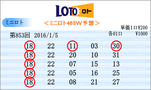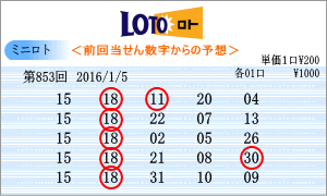 | 平成28年1月5日の運命数は、「8」・「6」・「2」の3つ。「08」・「18」・「28」・「06」・「16」・「26」・「02」・「12」・「22」の9つが該当数字です。チャートからの注意数字は、「01」・「04」・「05」・「08」・「12」・「13」・「16」・「20」・「24」・「26」など。今年最初の抽せんを狙う軸数字は、「18」と「22」を選びました。「18・22」は465組の中で過去27回出現しています。 |