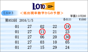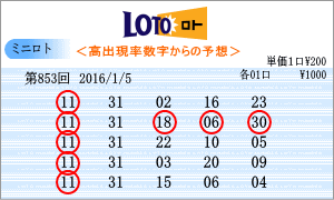 | 1月5日の予測範囲は、「01」・「02」・「08」・「10」・「11」・「15」・「16」・「18」・「21」・「22」・「23」・「25」・「27」・「30」・「31」となりました。連続数字は、「15」と「18」を軸数字に。高確率は、ベスト数字1位の「11」と4位の「31」を軸数字に。低確率は、ワースト数字2位の「01」と4位の「27」を軸数字に選びました。5口の買い目は最新相性数字から組み立てました。 |