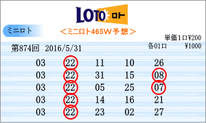 | 5月31日の運命数は、「2」と「3」です。「02」・「12」・「22」・「03」・「13」・「23」の6つが該当数字です。チャートからの注意数字は、「03」・「05」・「07」・「09」・「10」・「11」・「18」・「19」・「22」・「24」・「26」となりました。今回の軸数字は、ベスト数字4位の「22」と「03」を選びました。「03・22」というコンビは41回出現で3番手の組み合わせです。 |