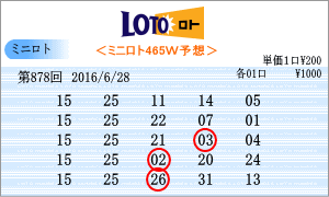 | 6月28日の運命数は「5」と「2」の2つ。該当数字は、「05」・「15」・「25」・「02」・「12」・「22」の6つです。チャートからの注意数字は、「03」・「05」・「07」・「12」・「13」・「15」・「21」・「22」・「25」・「29」となりました。運命数からの軸数字は「12」・「15」・「25」の中から「15」と「25」を選びました。「15・25」の組み合わせは過去30回出現しています。 |