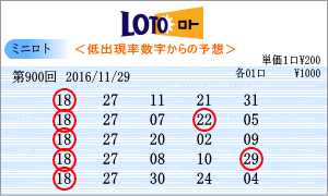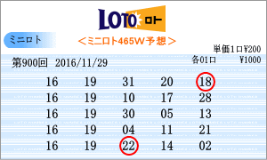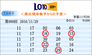 | 11月29日の予測数字は、「02」・「08」・「11」・「15」・「16」・「17」・「18」・「19」・「21」・「22」・「26」・「27」・「30」・「31」となりました。連続数字の候補は、「19」と「31」を軸数字に。高確率は、15回でトップの「31」が連続数字になりましたので、14回の「17」と11回の「11」を軸数字に。低確率は、7回の「27」、9回の「18」を軸数字に選びました。それぞれ5口の買い目は、ミニロトパーフェクトデータの最新相性数字で組み立てました。 |