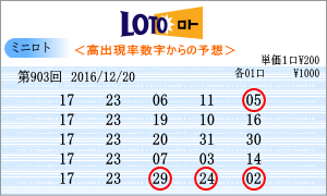 | 12月20日の予測数字は、斜線成立数字が多く、絞り込みに苦労しました。候補は、「01」・「02」・「03」・「05」・「07」・「09」・「15」・「16」・「17」・「21」・「22」・「23」・「25」・「26」・「29」となりました。連続数字としては、「16」と「22」を軸数字に。高確率は、14回の「17」と13回の「23」を軸数字に。低確率は、7回の「05」と9回の「21」を軸数字として選びました。それぞれ5口の買い目は、ミニロトパーフェクトデータの最新相性数字で組み立てました。 |