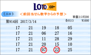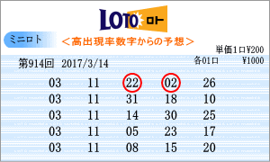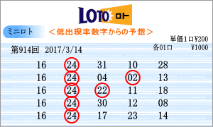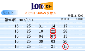 | 3月14日の予測数字は、「01」・「03」・「08」・「11」・「12」・「14」・「15」・「16」・「17」・「18」・「20」・「21」・「22」・「24」・「27」となりました。913回からの連続数字は、連続出現回数39回の「21」と36回の「17」を軸数字に。高確率数字は、ベスト数字1位の「11」と5位の「03」を軸数字に。低確率数字は、0回の「24」と1回の「16」を軸数字として選びました。それぞれ相性数字から5口の買い目を組み立てました。 |