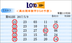 | 5月9日の予測数字は、「01」・「03」・「05」・「07」・「09」・「11」・「14」・「15」・「22」・「23」・「26」・「28」・「29」・「30」・「31」となりました。921回からの連続数字は、連続出現回数が46回という「14」と35回の「30」を軸数字に。高確率数字は、トップ8回の「22」と5回の「23」を軸数字に。低確率数字は、1回の「11」と「29」を軸数字に選びました。それぞれ5口の買い目は最新相性数字から選びました。 |