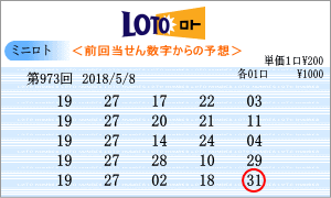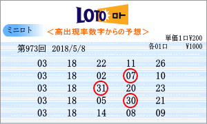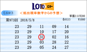 | 5月8日の第973回予測数字は、「02」・「03」・「05」・「07」・「08」・「10」・「15」・「18」・「19」・「20」・「23」・「26」・「27」・「28」・「29」となりました。972回からの連続数字は、「19」と「27」を軸数字に。高確率数字は、トップ7回の「03」とベスト数字3位の「18」を軸数字に。低確率数字は、1回という「23」と3回の「29」を軸数字として選びました。「08」は今年ただ1つの0回数字なんですが今回は見送りました。 |