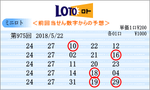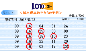 | 5月22日の予測数字は、「03」・「05」・「09」・「11」・「16」・「17」・「19」・「20」・「22」・「23」・「24」・「25」・「27」・「28」・「31」となりました。974回からの連続数字は、「24」・「27」を軸数字に。高確率数字は、ベスト数字3位の「03」と5位の「31」を軸数字に。低確率数字は、ともにまだ2回という「09」と「16」を軸数字に選びました。ミニロトパーフェクトデータの相性数字からの買い目です。 |