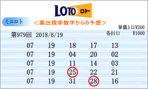 | 6月19日第979回の予測数字は、「03」・「05」・「06」・「07」・「08」・「09」・「14」・「16」・「18」・「19」・「21」・「25」・「26」・「27」・「29」となりました。連続数字は、「08」と「26」を軸数字に。高確率数字はトップ8回の「19」と7回の「07」を軸数字に。低確率数字は、ともに3回という「05」と「14」を軸数字に選びました。ミニロトパーフェクトデータから5口の買い目を組み立てました。 |