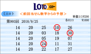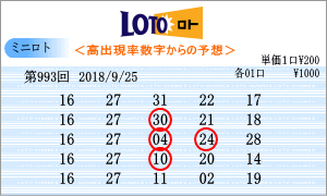| 9月25日の第993回を狙う予測数字は、「02」・「03」・「04」・「06」・「13」・「14」・「15」・「16」・「18」・「19」・「20」・「21」・「23」・「27」・「29」となりました。992回からの連続数字は、連続出現回数が49回の「14」と29回の「20」を軸数字に。高確率数字は、トップ11回出現の「27」と8回の「16」を軸数字に。低確率数字は、6回の「13」と4回の「29」を軸数字に選びました。それぞれ5口の買い目はミニロトパーフェクトデータからの相性数字で組み立てました。 |